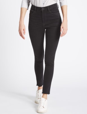 Frayed Hem High Waist Skinny Leg Jeans M S Collection M S